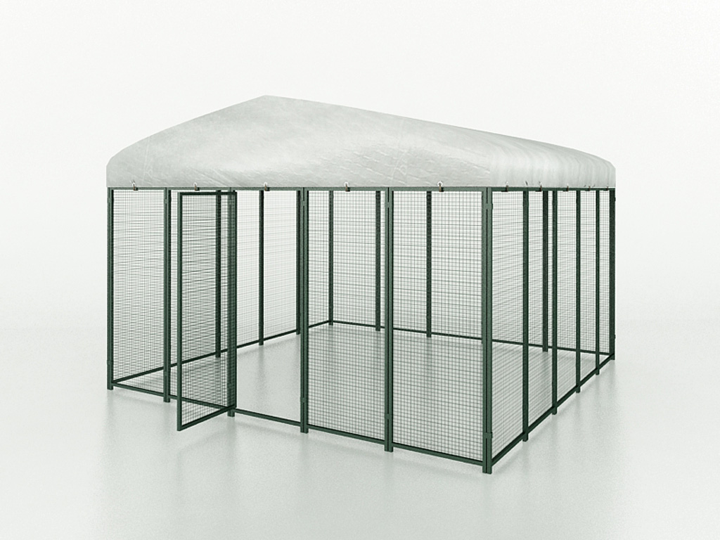 Gemaakt van koolstofstaal met een antioxiderende poedercoating. De structuur is gemaakt van buizen van 20 x 20 cm met een dikte van 0,8 mm. Het maasnet is 25 x 25 mm en heeft een dikte van 1,8 mm. Met een dak van premium polyethyleen (PE), dat waterafstotend en UV-bestendig is. De kleur is groen (RAL 6005).
