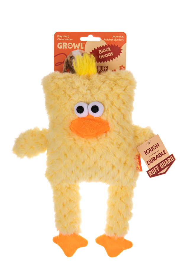 De Growl Block Heads combineren speels design met robuuste constructie. Elk Block Head-speeltje heeft een unieke blokvorm, een textuur van stevig pluche en een verborgen pieper, waardoor het speelgoed uitdagend en aantrekkelijk blijft voor langdurig spel.