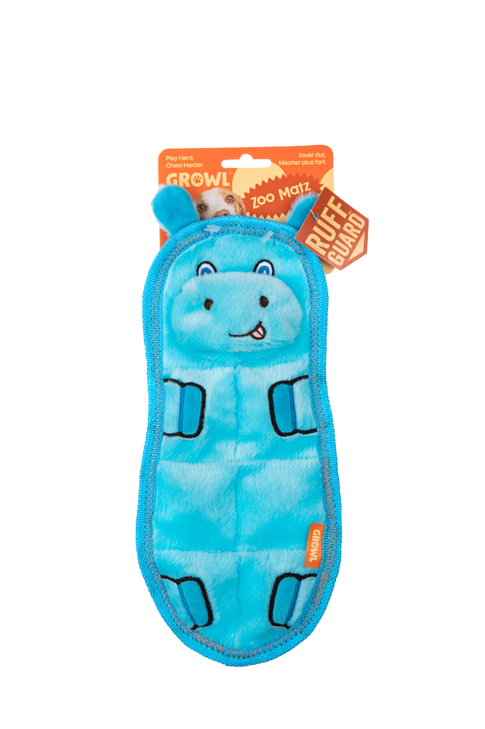 De Growl Zoo Matz zijn platte, dierenthema-speeltjes die ideaal zijn om te floppen, gooien en rond te dragen. Elk speeltje bevat zeven piepers voor langdurige interactie en speelplezier en is ontworpen met het speelse karakter van dierenthema’s in gedachten.