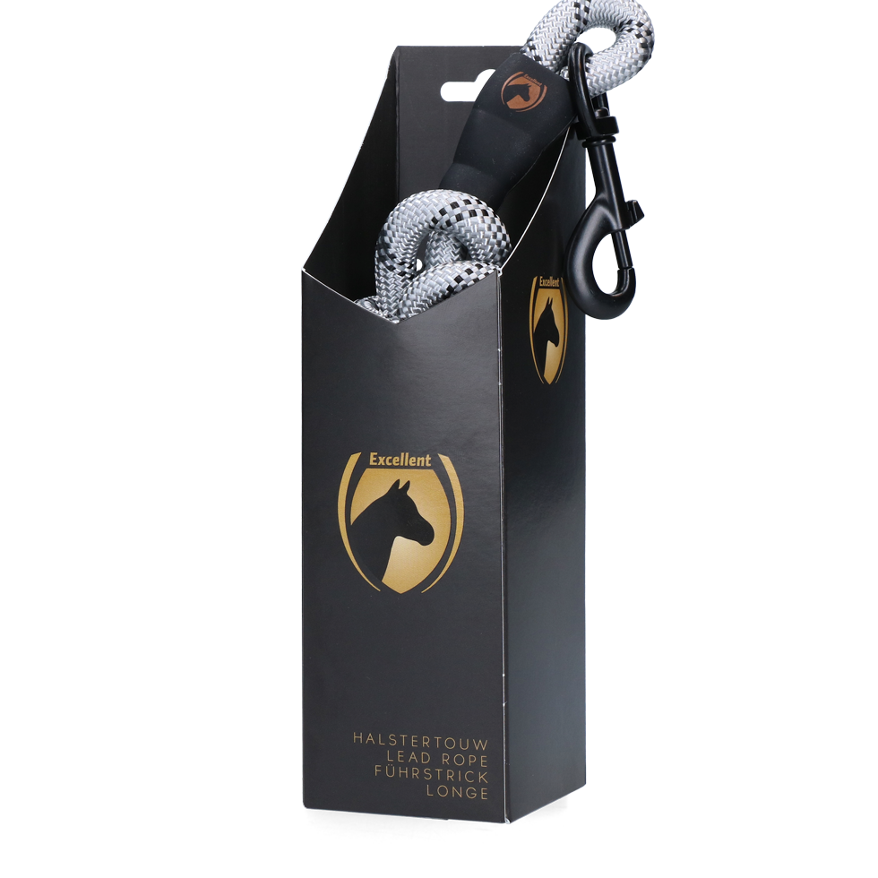 Het halstertouw van Excellent Horse is te combineren met alle halsters van Excellent Horse en is dan ook in 5 verschillende kleuren verkrijgbaar. In het halstertouw zitten reflecterende details en het gebruikte materiaal, namelijk sterk polyester, wordt ook gebruikt door bergbeklimmers. De bevestiging van het halstertouw bestaat uit een 360 graden draaibare musketonhaak (zwart) met een fraaie rubberafwerking. Het halstertouw heeft een lengte van 2 meter.