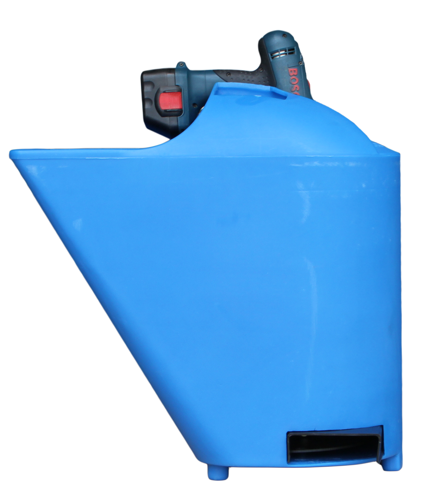 Simpel zaagsel verstrooien in ligboxen maar ook in kalverboxen of paarden boxen. Kent een inhoud van 12 liter en is met bijna ieder type accuboormachine te bedienen.